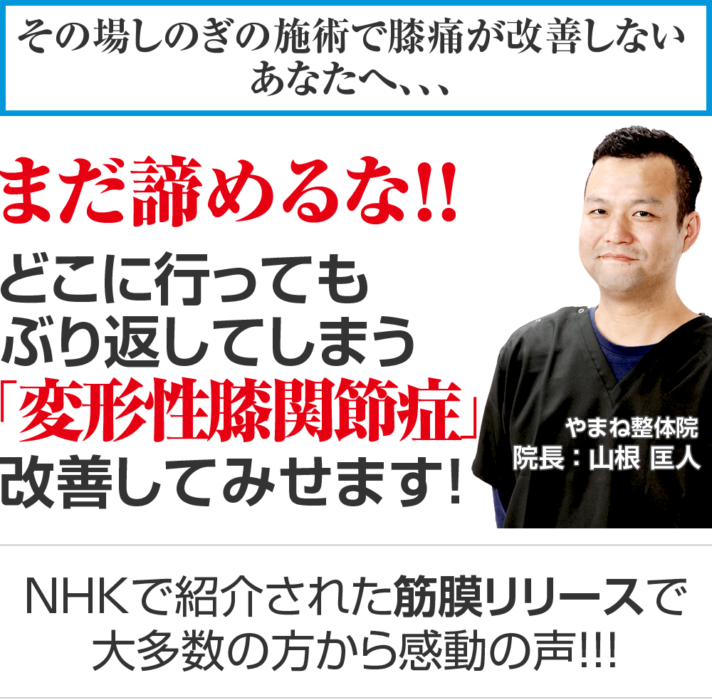 あなたもヤマネ整体院で「変形性膝関節症」を改善しませんか?